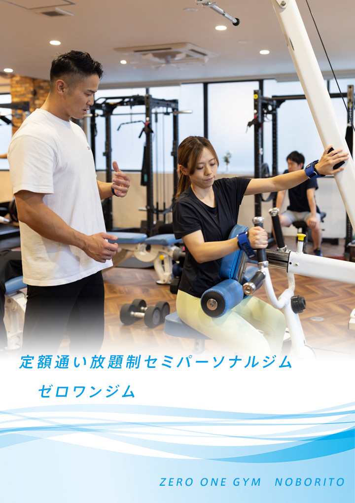 ゼロワンジム登戸は、初心者や女性にも優しい、登戸で最も『継続』できる定額通い放題制セミパーソナルジムです。