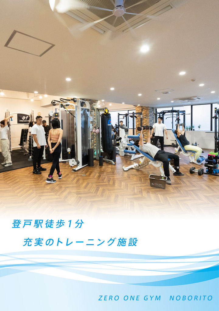 ゼロワンジム登戸は『継続できるジム』という理念のもと、会員様が長期的に運動を続けられるよう、またダイエットや筋トレの本質を習得できるよう取り組んでいます。