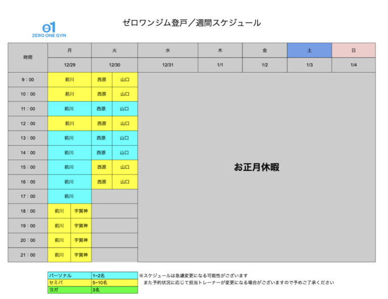 ゼロワンジム登戸の1月26日(月)から1週間のトレーナー情報とNewsをお知らせします!