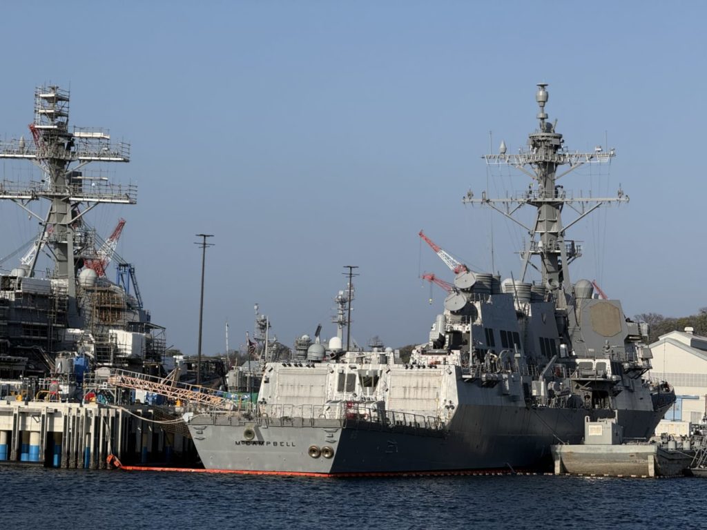 昨年12月から停泊している空母ジョージ・ワシントンは岸から見えるドックの裏側に位置してて空母の司令塔のみがイージス2隻の間から見えました😅
