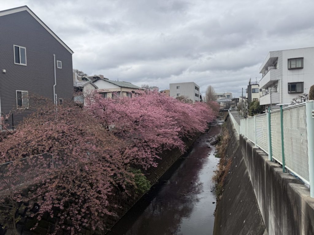いつも出勤時に通る生田の五反田川に河津桜が綺麗に咲き誇っていました🌸
