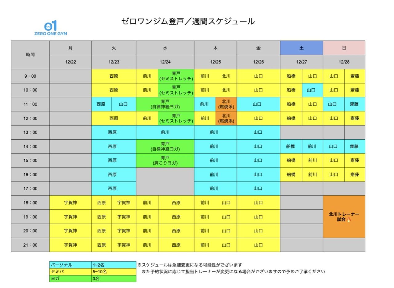 ゼロワンジム登戸の12月22日(月)から1週間のトレーナー情報とNewsをお知らせします!